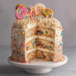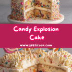 A fun and festive Candy Explosion Cake filled and topped with colorful candies, perfect for birthdays and celebrations.