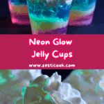 Neon Glow Jelly Cups are a fun and vibrant party treat made with brightly colored jelly and tonic water that glows under blacklight. Perfect for glow-in-the-dark parties or Halloween celebrations.